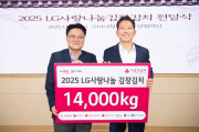LG경북협의회(회장 문혁수)는 지난26일 구미시청에서 지역사회복지시설과 결연세대에 LG사랑나눔 김장김치 약14,000kg를 전달했다. 이날 전달식에는 금오종합사회복지관, 구미종합사회복지관, 구미시장애인종합복지관, 구미시먹거리지원센터가 참여했다. 지역 이웃들의 겨울 나기를 돕고자 LG는 지난 2014년부터 12년간 한결같이 매년 김장 나눔을 진